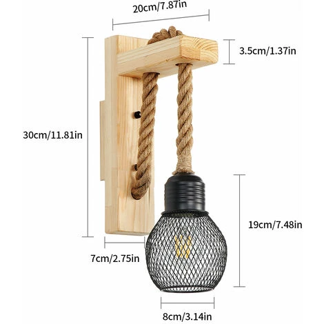Specifiche: La dimensione della lampada da parete vintage: 14 * 20 * 30 cm / 5,51 * 7,87 * 11,81 pollici. Materiale: Legno, corda di canapa e ferro art. Colore paralume: nero. Portalampada: E27. Potenza: 40W (massimo). Tensione: 220V. Area di illuminazione: 10-15㎡. Tipo di applicazione: illuminazione per interni.