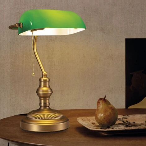 Lampada da tavolo, una tradizionale lampada da scrivania da banchiere. Con finitura effetto ottone antico, con paralume regolabile in vetro verde che filtra e proietta perfettamente la luce. Perfetto per l’uso in salotti, camere da letto, uffici, uffici, ecc.