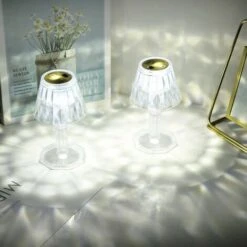 Trade Shop – Mini Lampada A Led Effetto Cristallo Da Tavolo Con Batteria Luce Fredda Interno 200gr