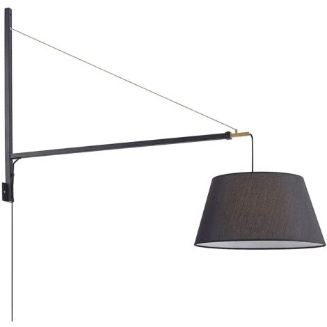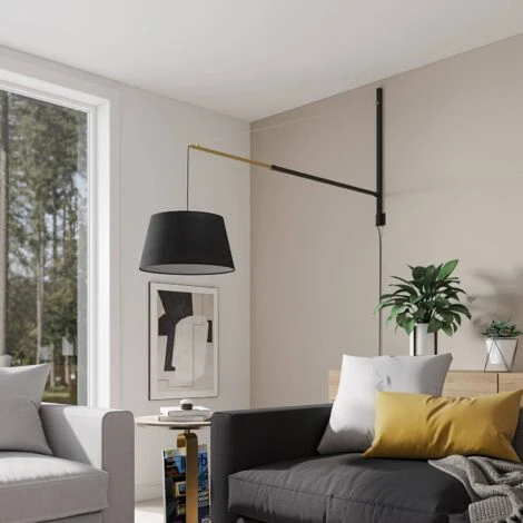 Lampada da parete estensibile Beleza con paralume in tessuto nero Beleza convince con un tocco moderno e una costruzione insolita, perché sembra essere un’alternativa concepibile a una lampada a sospensione. Tuttavia, l’ombra nera non pende qui dal soffitto, ma si proietta nella stanza attraverso una staffa a muro, che può essere cambiata nella sua proiezione. I colori nero e oro della staffa offrono un contrasto efficace e la proiezione è regolabile da 136 cm a 218 cm, in modo da garantire una certa flessibilità. Un esemplare di illuminazione da vedere per gli interni moderni!