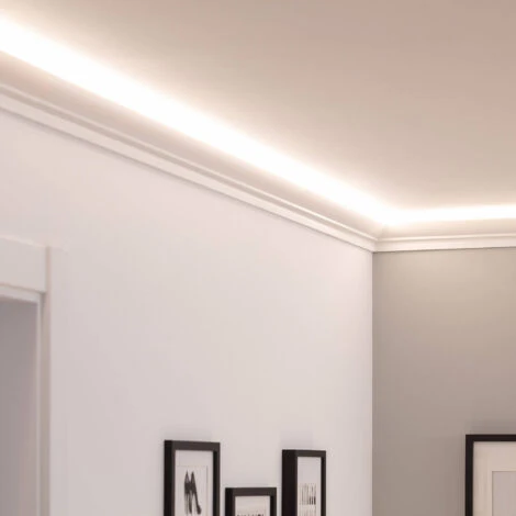 Modanatura per Striscia LED 2m Classic di alta qualità con profilo decorativo. Questa modanatura fornisce un’illuminazione decorativa indiretta per ottenere effetti spettacolari nella decorazione e nell’illuminazione di qualsiasi spazio.