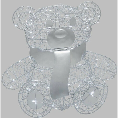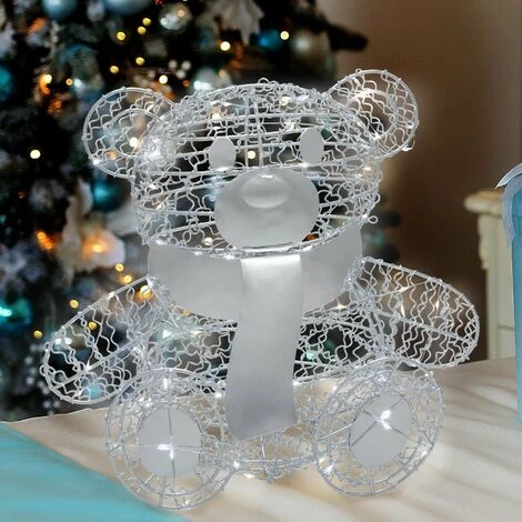 Questo orsacchiotto, disponibile in quattro versioni, fa parte di una più vasta collezione di decorazioni luminose in metallo lucido che include alberi, stelle 3D e puntali per albero. È quindi possibile abbinarlo a decorazioni dello stesso stile.