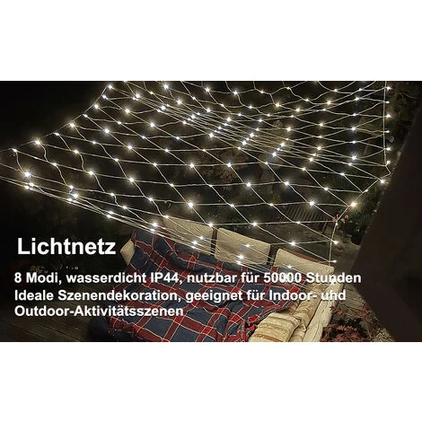 – Grado di protezione IP 44. Adatto per uso interno ed esterno. Puoi appendere le luci della rete a parete, finestra, porta, pavimento, soffitto, erba e albero di Natale.