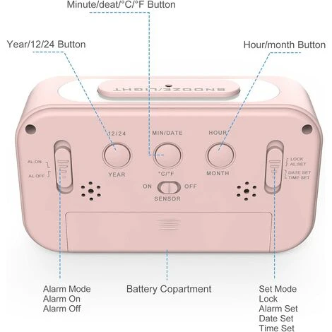 Sveglia digitale con funzione snooze e allarme forte: l’allarme in aumento suonerà ad alta voce per svegliarti in qualsiasi momento, perfetto per chi ha il sonno pesante. Premi il pulsante snooze per fare un pisolino di 5 minuti. La sveglia suonerà di nuovo tra 5 minuti.